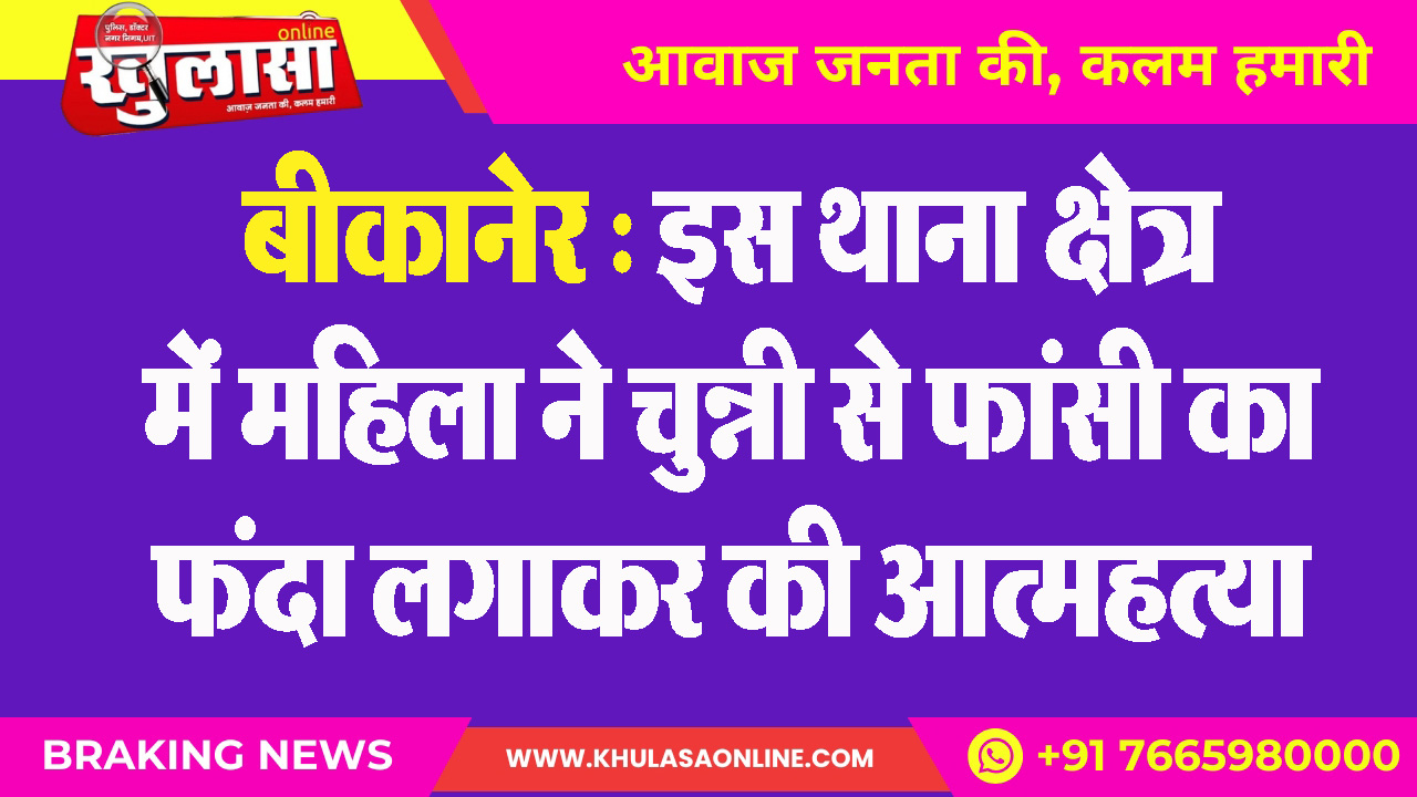बीकानेर : इस थाना क्षेत्र में महिला ने चुन्नी से फांसी का फंदा लगाकर की आत्महत्या