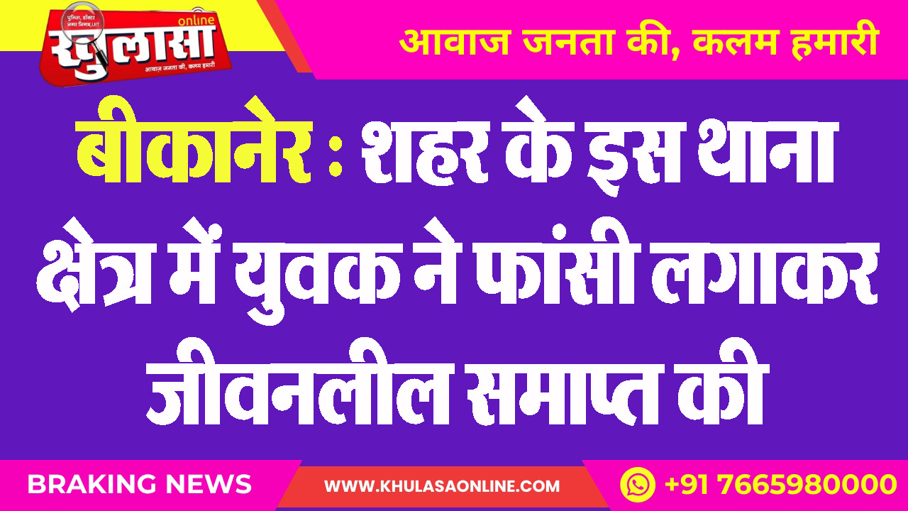 बीकानेर : शहर के इस थाना क्षेत्र में युवक ने फांसी लगाकर जीवनलील समाप्त की