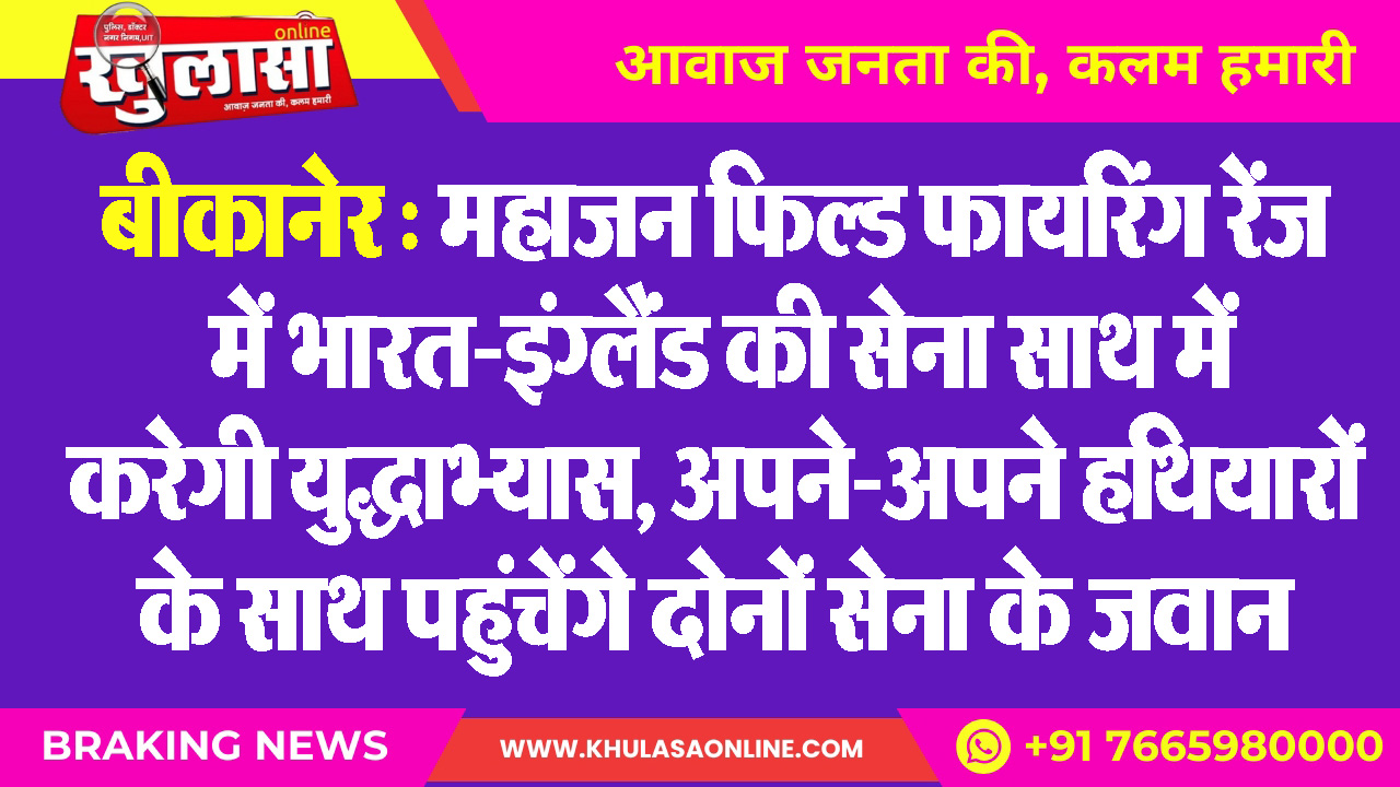 बीकानेर : महाजन फिल्ड फायरिंग रेंज में भारत-इंग्लैंड की सेना साथ में करेगी युद्धाभ्यास, अपने-अपने हथियारों के साथ पहुंचेंगे दोनों सेना के जवान