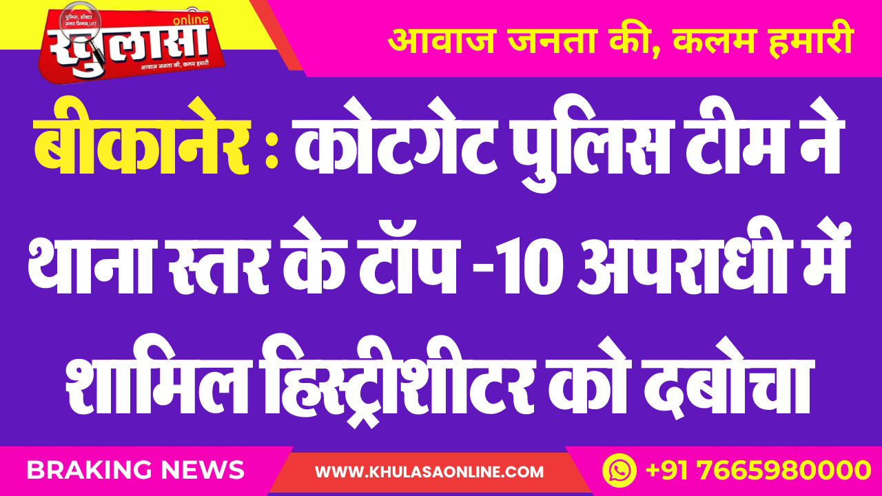 बीकानेर : कोटगेट पुलिस टीम ने थाना स्तर के टॉप -10 अपराधी में शामिल हिस्ट्रीशीटर को दबोचा