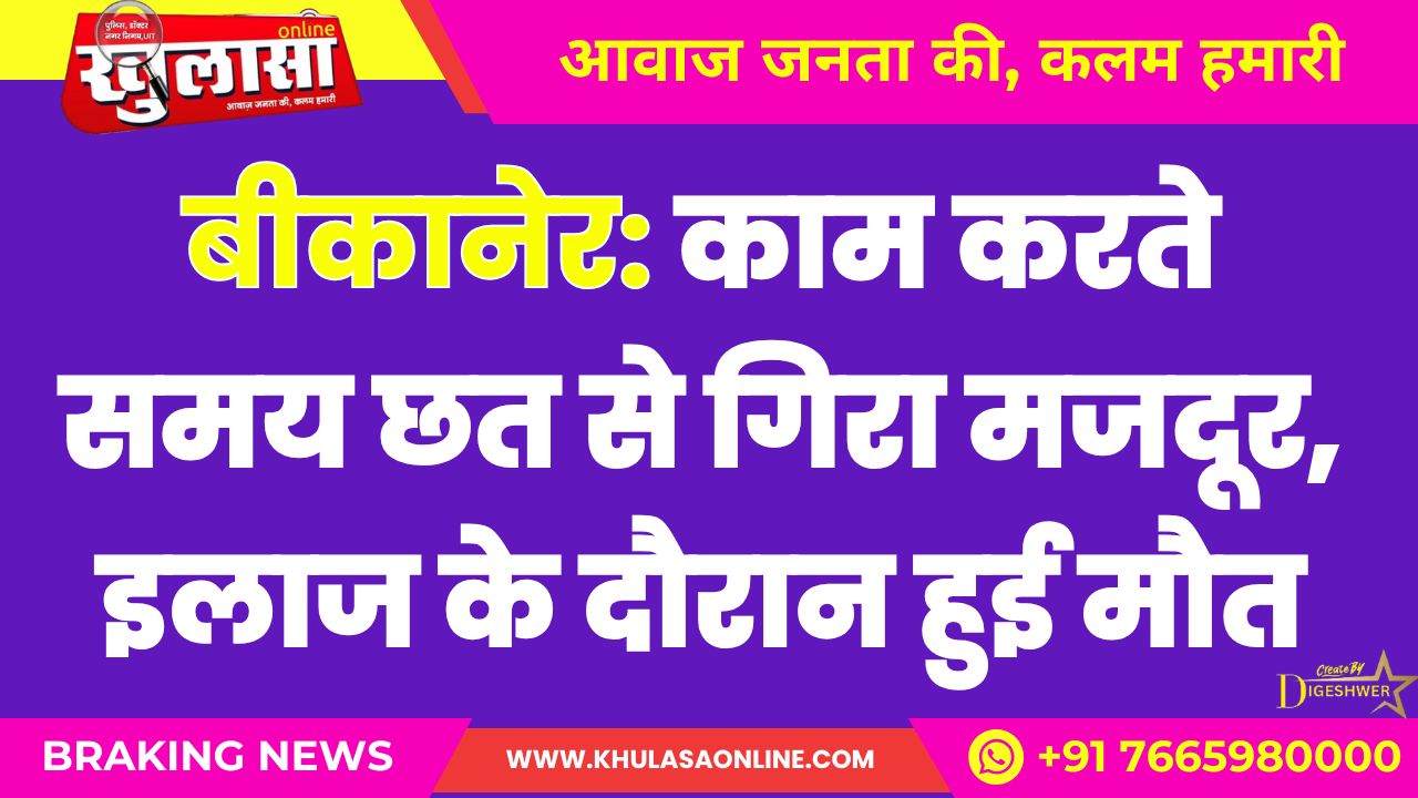 बीकानेर: काम करते समय छत से गिरा मजदूर, इलाज के दौरान हुई मौत