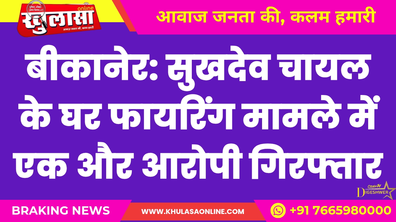 बीकानेर: सुखदेव चायल के घर फायरिंग मामले में एक और आरोपी गिरफ्तार, हिसार से दबोचा
