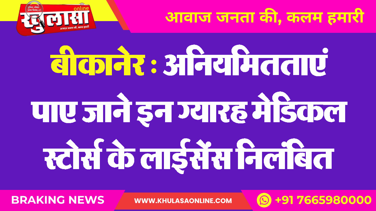 बीकानेर : अनियमितताएं पाए जाने इन ग्यारह मेडिकल स्टोर्स के लाईसेंस निलंबित