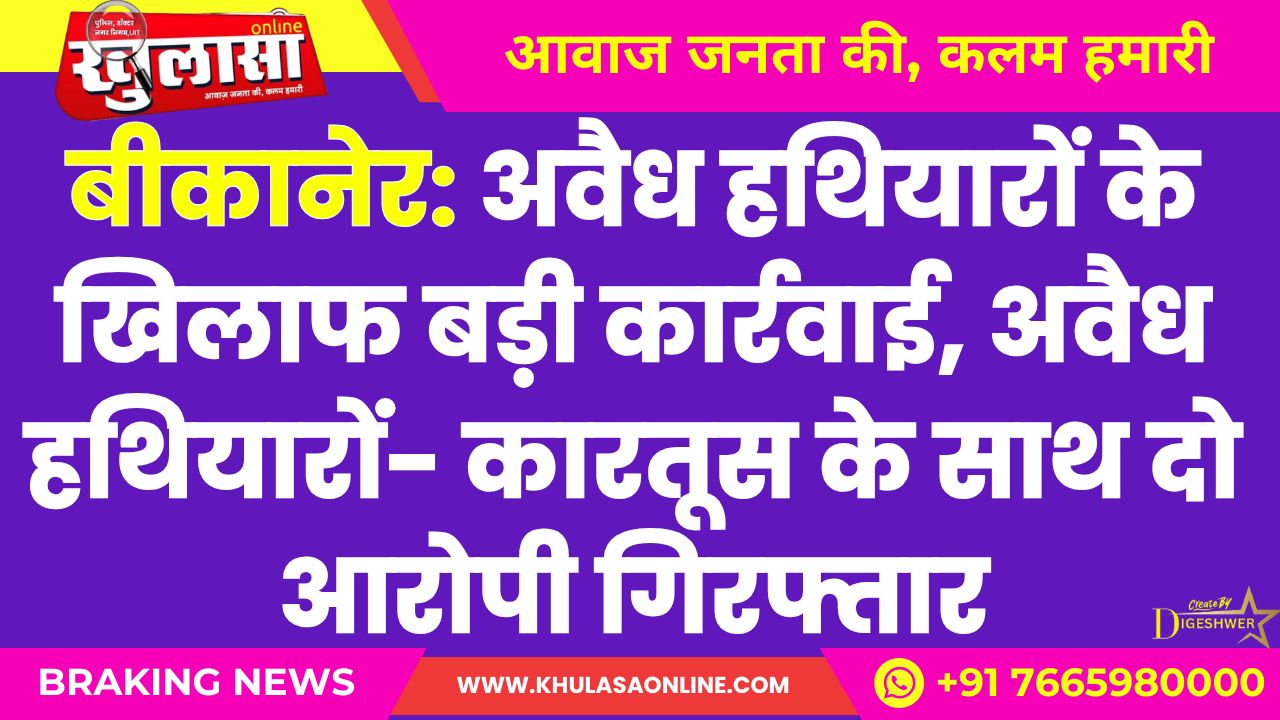 बीकानेर: अवैध हथियारों के खिलाफ बड़ी कार्रवाई, अवैध हथियारों- कारतूस के साथ दो आरोपी गिरफ्तार