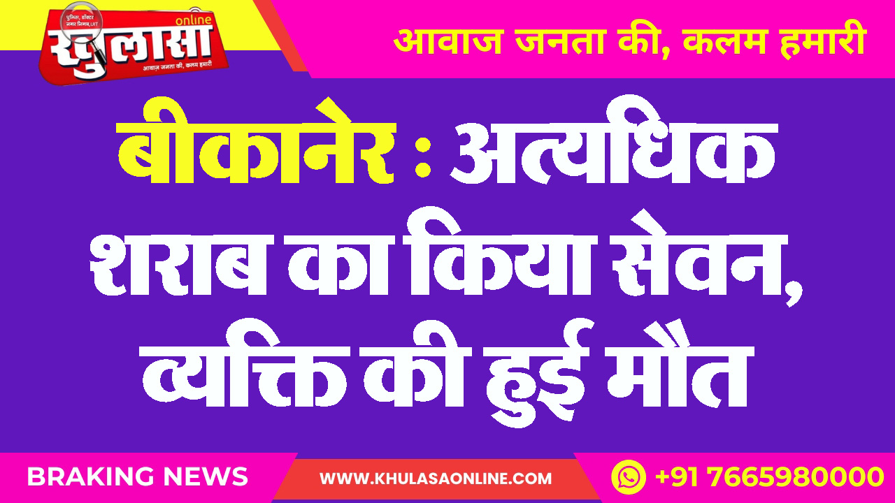 बीकानेर : अत्यधिक शराब का किया सेवन, व्यक्ति की हुई मौत