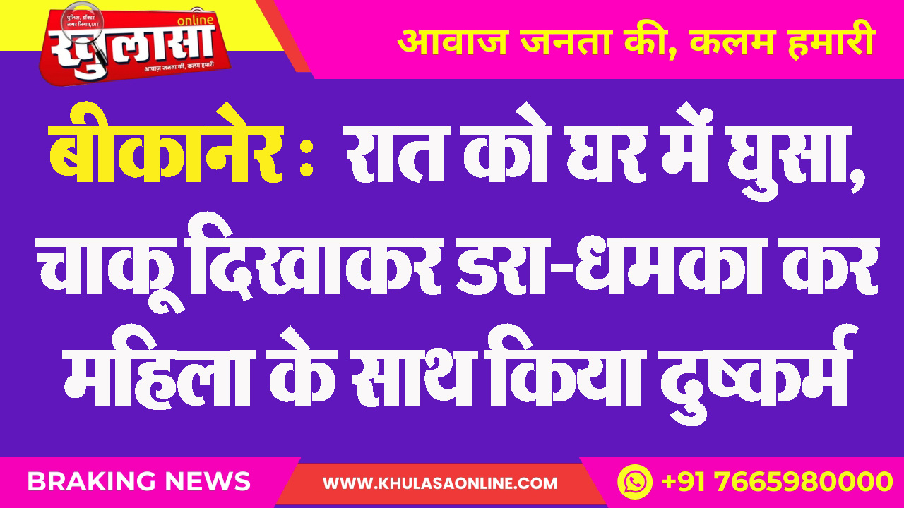बीकानेर : रात को घर में घुसा, चाकू दिखाकर डरा-धमका कर महिला के साथ किया दुष्कर्म