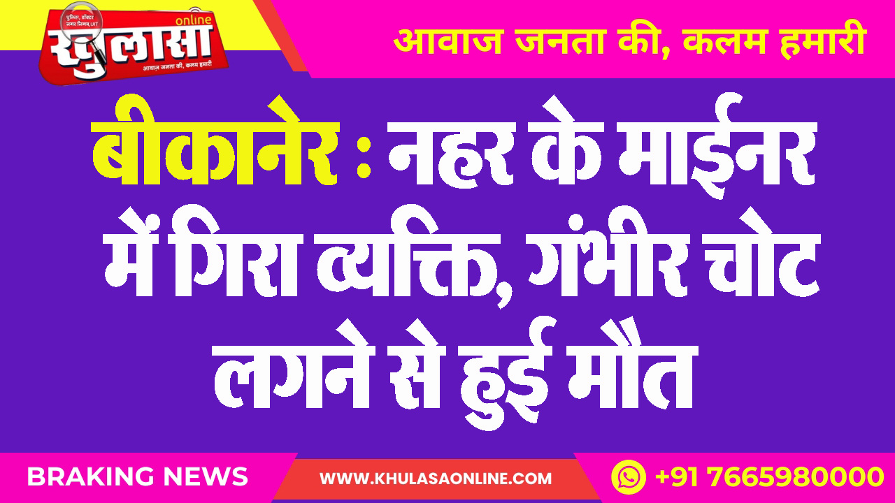 बीकानेर : नहर के माईनर में गिरा व्यक्ति, गंभीर चोट लगने से हुई मौत