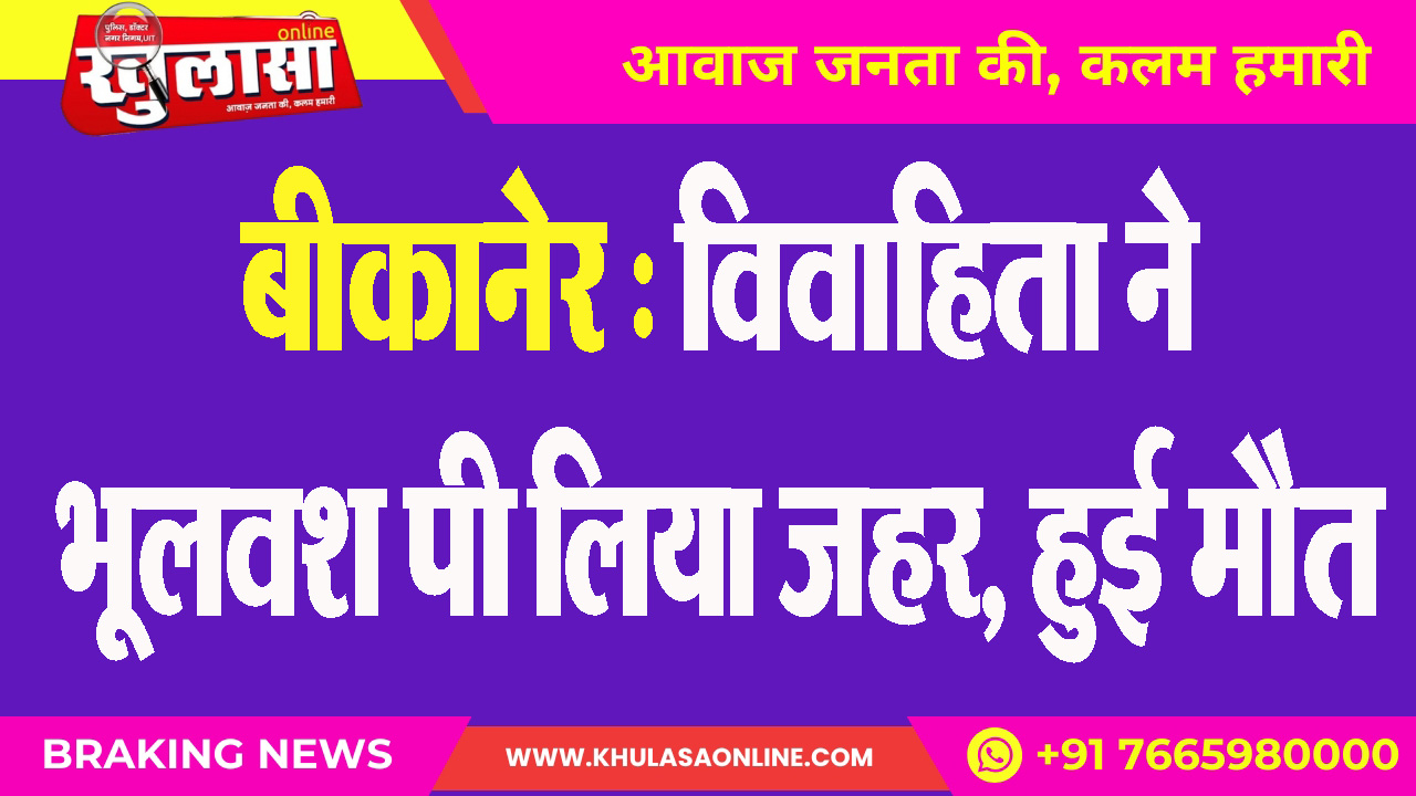 बीकानेर : विवाहिता ने भूलवश पी लिया जहर, हुई मौत