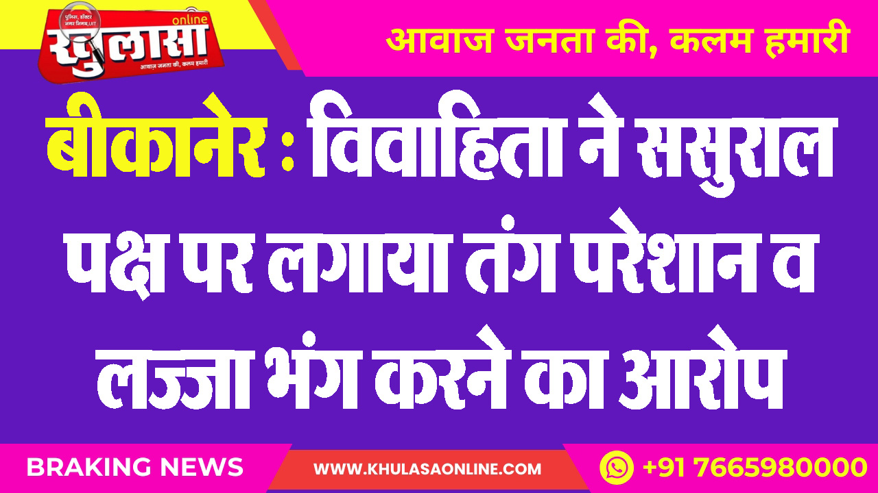बीकानेर : विवाहिता ने ससुराल पक्ष पर लगाया तंग परेशान व लज्जा भंग करने का आरोप