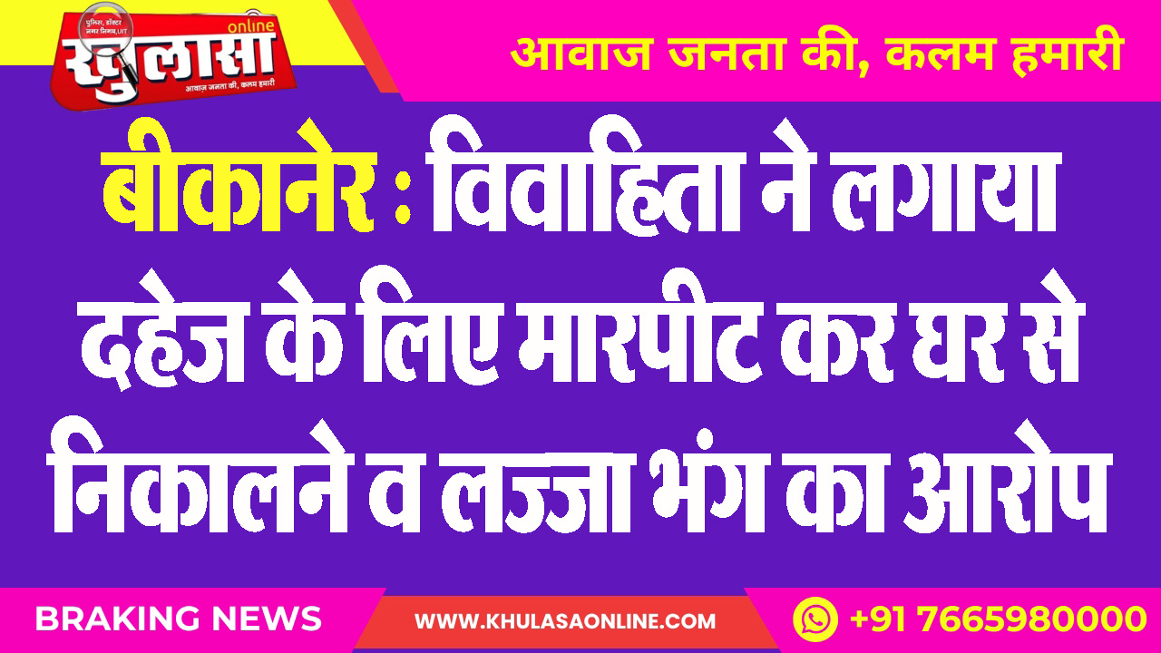 बीकानेर : विवाहिता ने लगाया दहेज के लिए मारपीट कर घर से निकालने व लज्जा भंग का आरोप