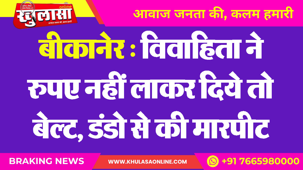 बीकानेर : विवाहिता ने रुपए नहीं लाकर दिये तो बेल्ट, डंडो से की मारपीट