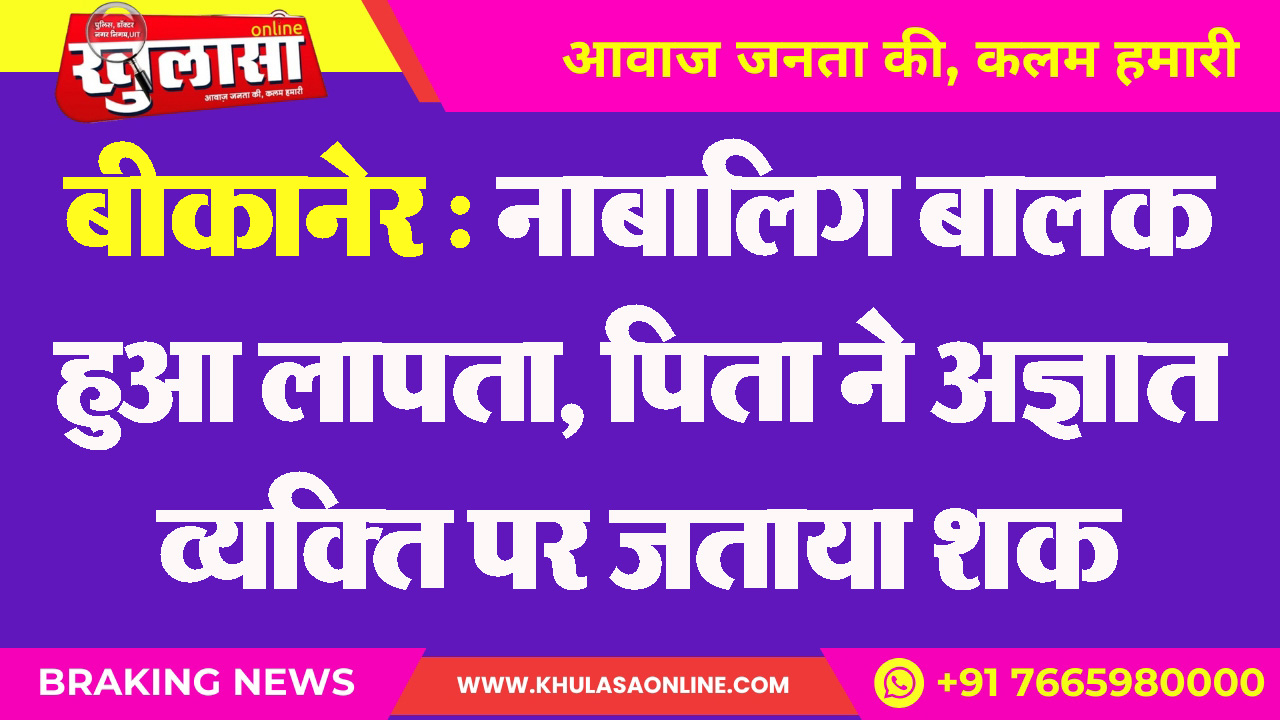बीकानेर : नाबालिग बालक हुआ लापता, पिता ने अज्ञात व्यक्ति पर जताया शक