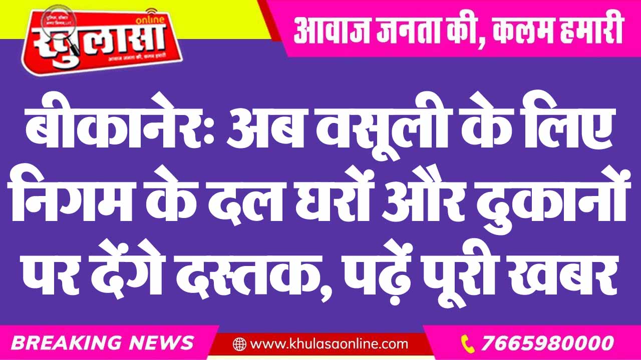बीकानेर: अब वसूली के लिए निगम के दल घरों और दुकानों पर देंगे दस्तक, पढ़ें पूरी खबर