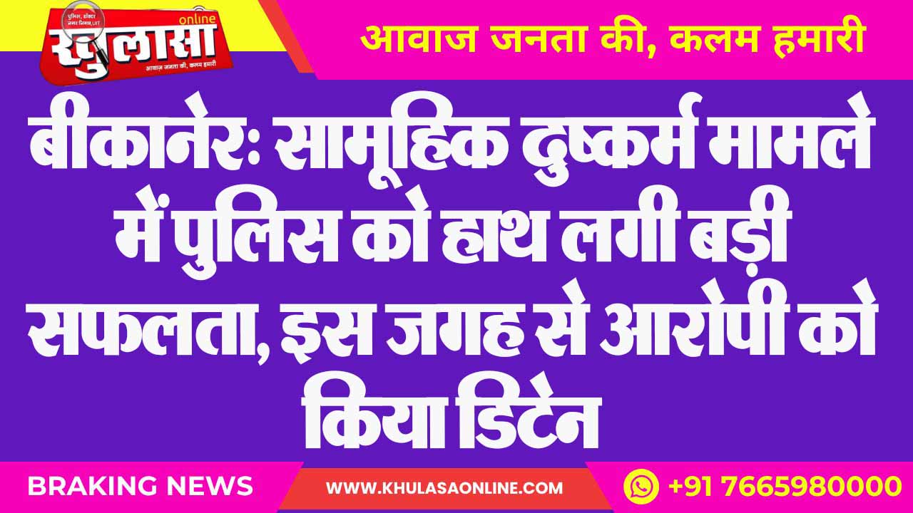 बीकानेर: सामूहिक दुष्कर्म मामले में पुलिस को हाथ लगी बड़ी सफलता, इस जगह से आरोपी को किया डिटेन