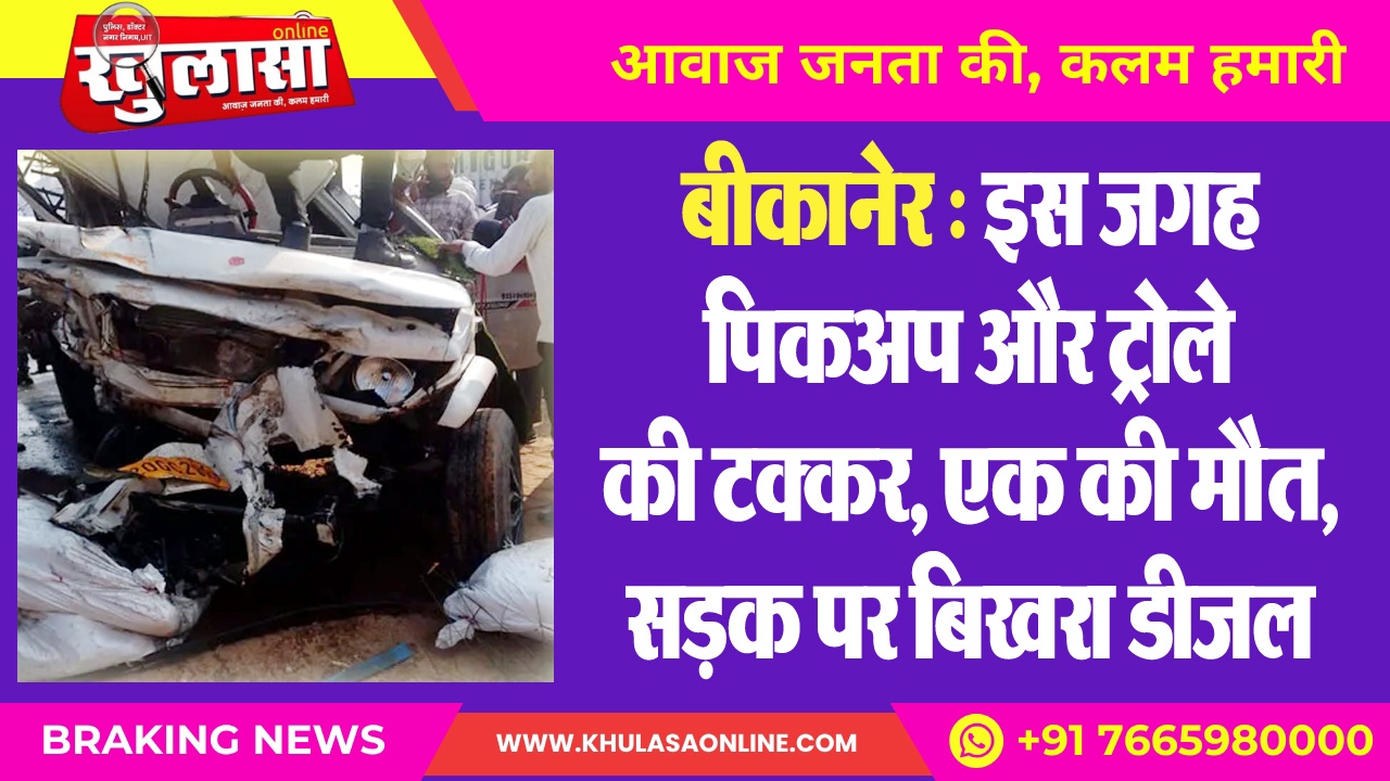 बीकानेर : इस जगह पिकअप और ट्रोले की टक्कर, एक की मौत, सडक़ पर बिखरा डीजल