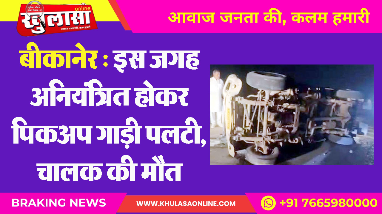 बीकानेर : इस जगह अनियंत्रित होकर पिकअप गाड़ी पलटी, चालक की मौत