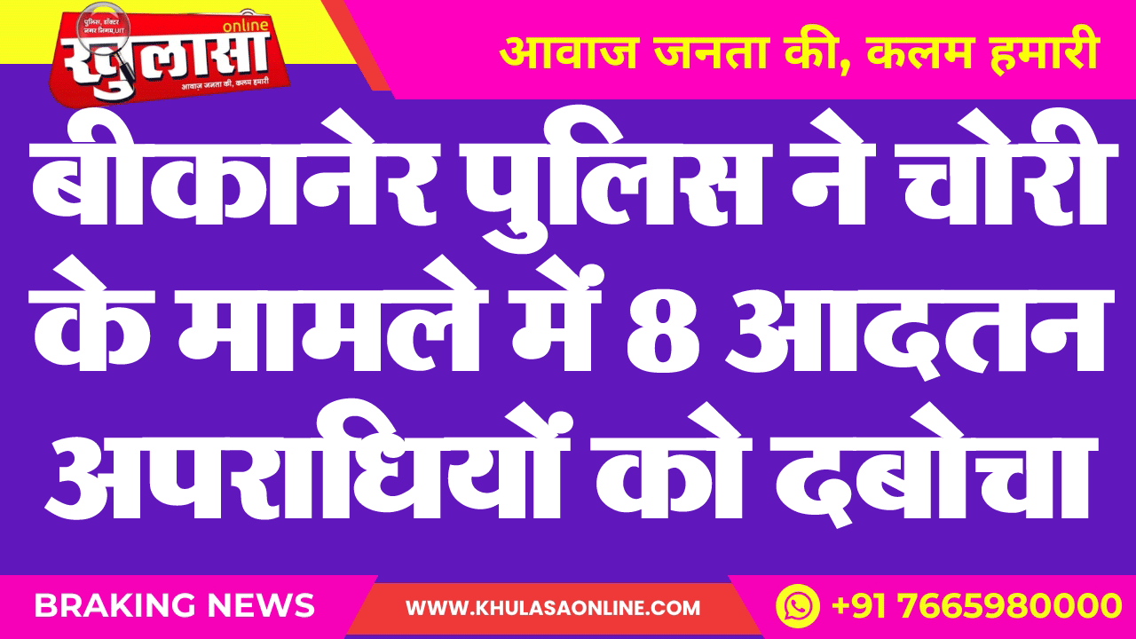 बीकानेर पुलिस ने चोरी के मामले में 8 आदतन अपराधियों को दबोचा
