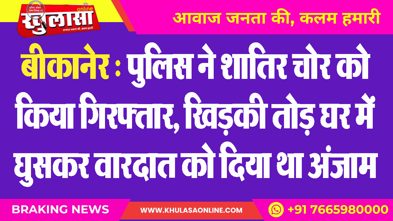 बीकानेर : पुलिस ने शातिर चोर को किया गिरफ्तार, खिडक़ी तोड़ घर में घुसकर वारदात को दिया था अंजाम