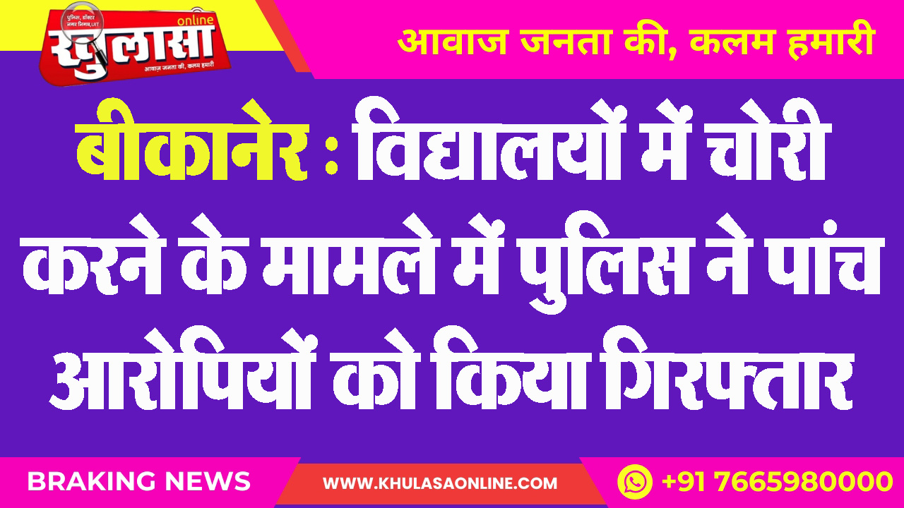 बीकानेर : विद्यालयों में चोरी करने के मामले में पुलिस ने पांच आरोपियों को किया गिरफ्तार
