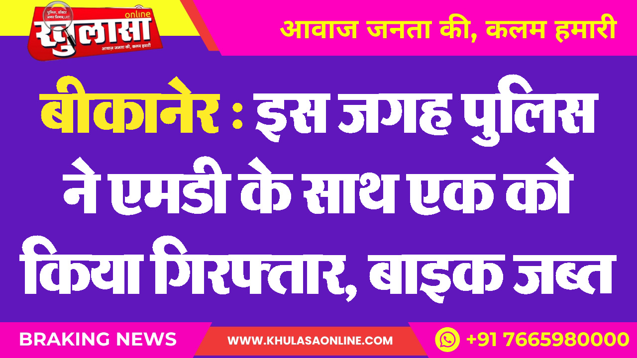 बीकानेर : इस जगह पुलिस ने एमडी के साथ एक को किया गिरफ्तार, बाइक जब्त