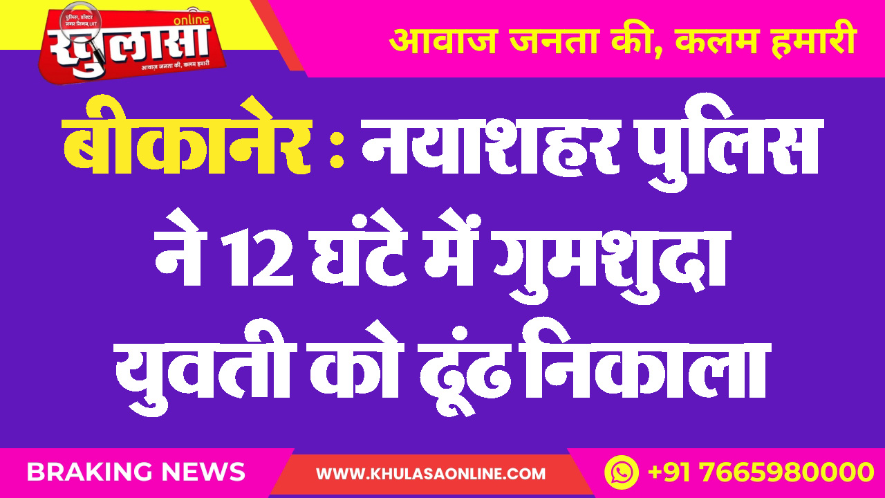 बीकानेर : नयाशहर पुलिस ने 12 घंटे में गुमशुदा युवती को ढूंढ निकाला