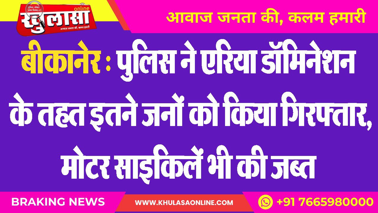 बीकानेर : पुलिस ने एरिया डॉमिनेशन के तहत इतने जनों को किया गिरफ्तार, मोटर साइकिलें भी की जब्त