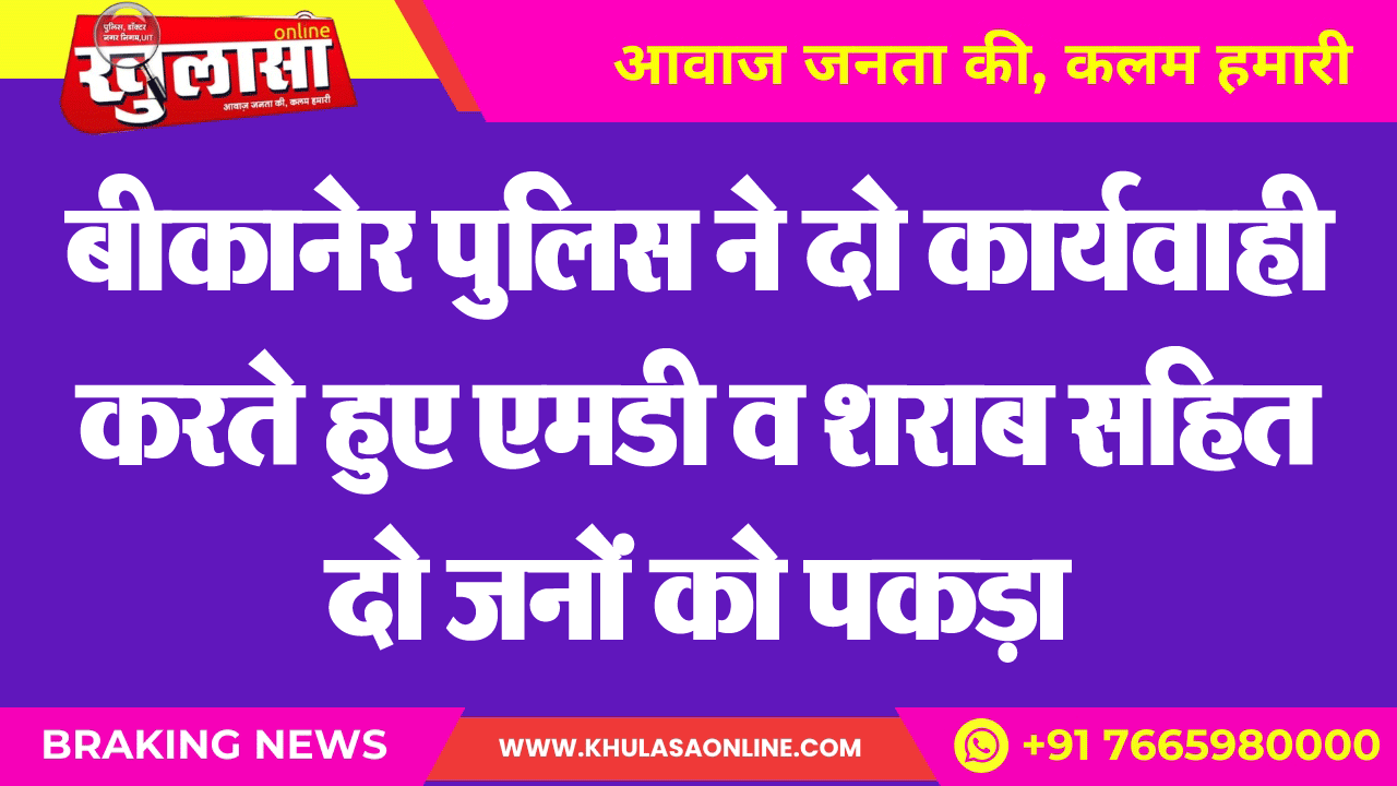 बीकानेर पुलिस ने दो कार्यवाही करते हुए एमडी व शराब सहित दो जनों को पकड़ा