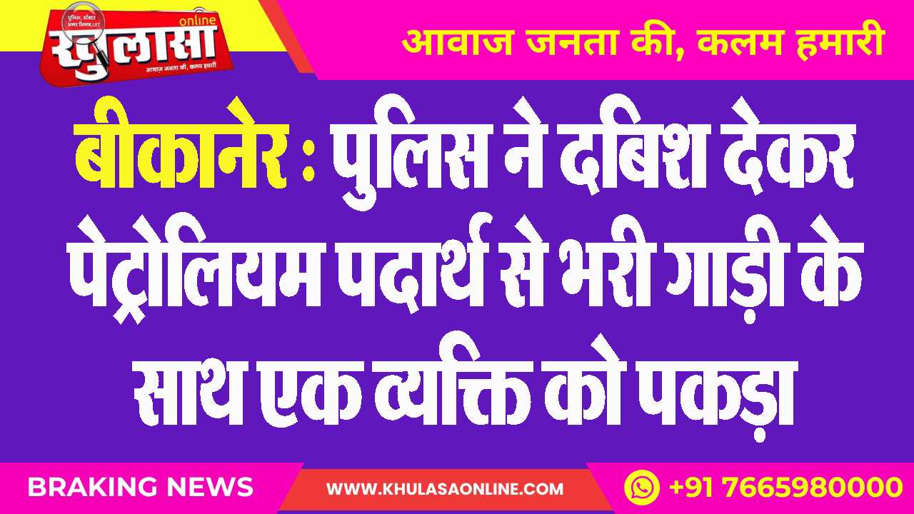 बीकानेर : पुलिस ने दबिश देकर पेट्रोलियम पदार्थ से भरी गाड़ी के साथ एक व्यक्ति को पकड़ा
