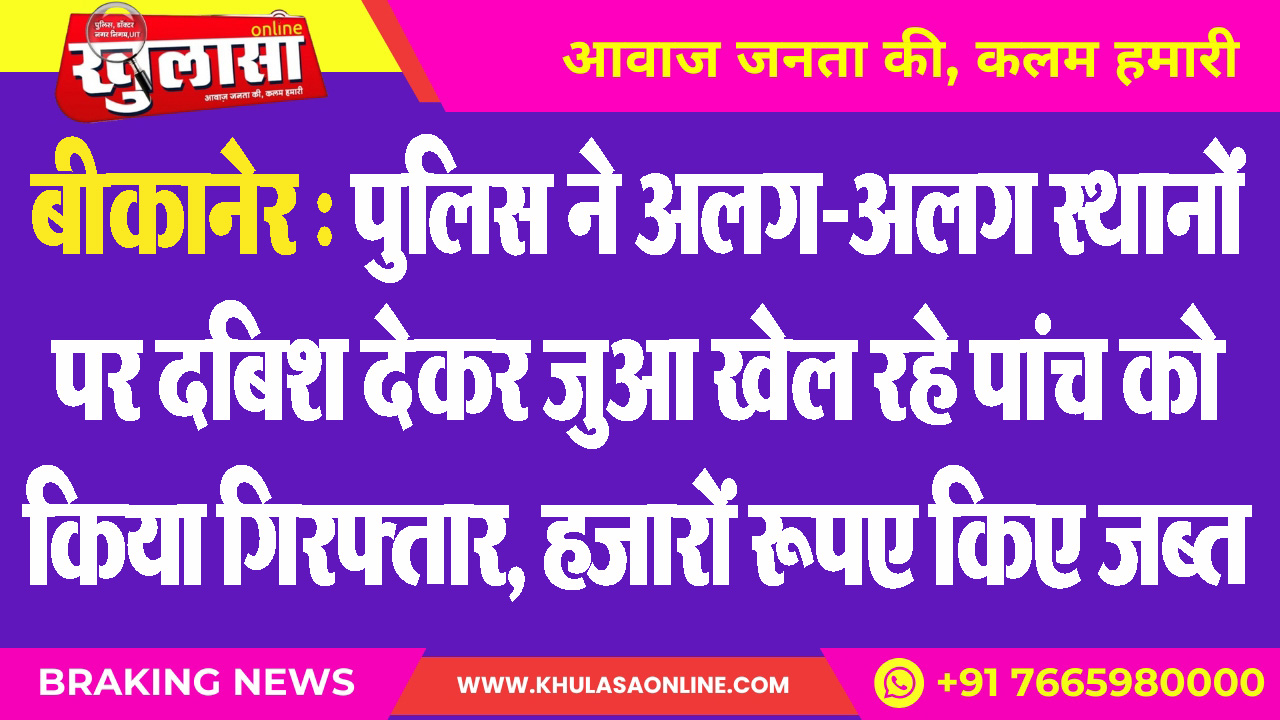 बीकानेर : पुलिस ने अलग-अलग स्थानों पर दबिश देकर जुआ खेल रहे पांच को किया गिरफ्तार, हजारों रूपए किए जब्त