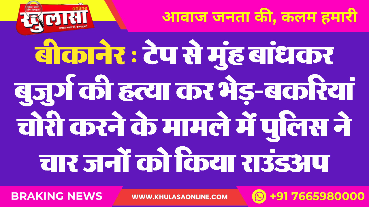 बीकानेर : टेप से मुंह बांधकर बुजुर्ग की हत्या कर भेड़-बकरियां चोरी करने के मामले में पुलिस ने चार जनों को किया राउंडअप