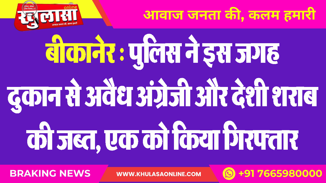 बीकानेर : पुलिस ने इस जगह दुकान से अवैध अंग्रेजी और देशी शराब की जब्त, एक को किया गिरफ्तार