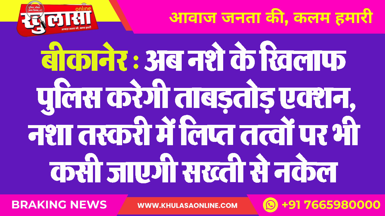 बीकानेर : अब नशे के खिलाफ पुलिस करेगी ताबड़तोड़ एक्शन, नशा तस्करी में लिप्त तत्वों पर भी कसी जाएगी सख्ती से नकेल