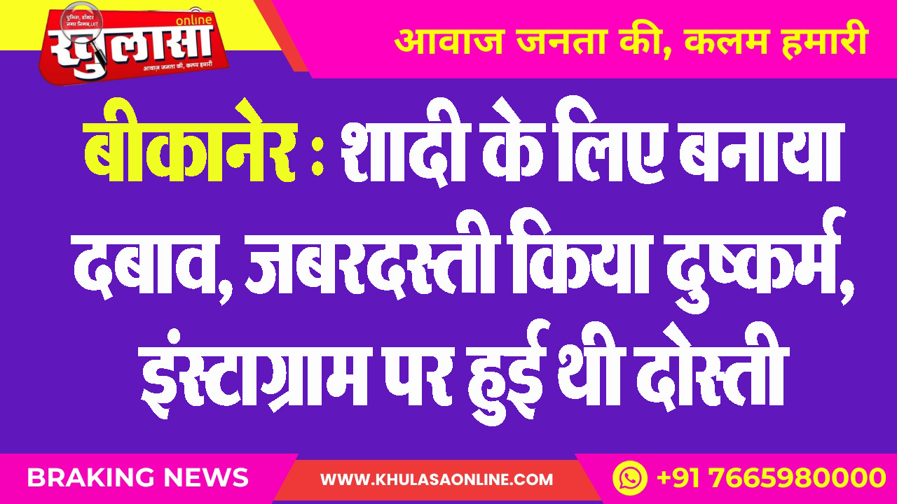 बीकानेर : शादी के लिए बनाया दबाव, जबरदस्ती किया दुष्कर्म, इंस्टाग्राम पर हुई थी दोस्ती