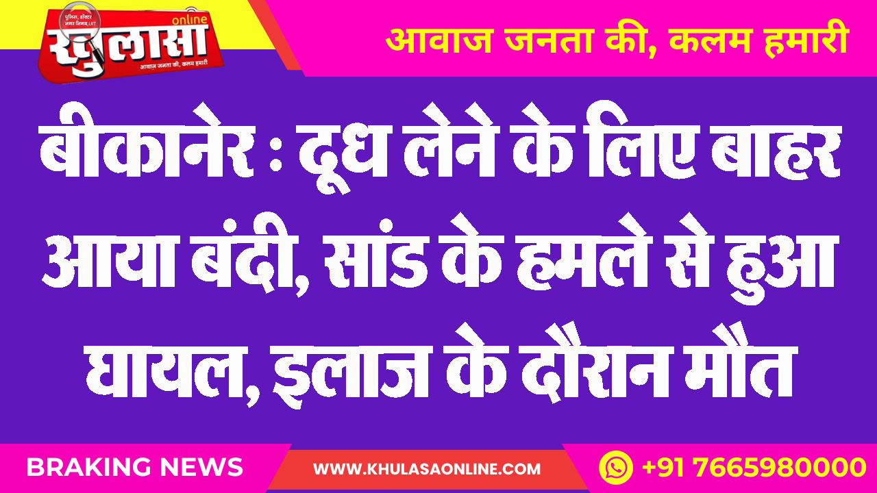 बीकानेर : दूध लेने के लिए बाहर आया बंदी, सांड के हमले से हुआ घायल, इलाज के दौरान मौत