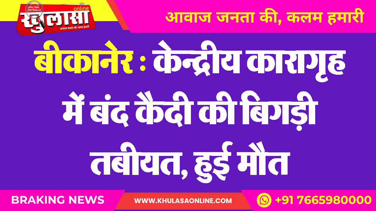 बीकानेर : केन्द्रीय कारागृह में बंद कैदी की बिगड़ी तबीयत, हुई मौत
