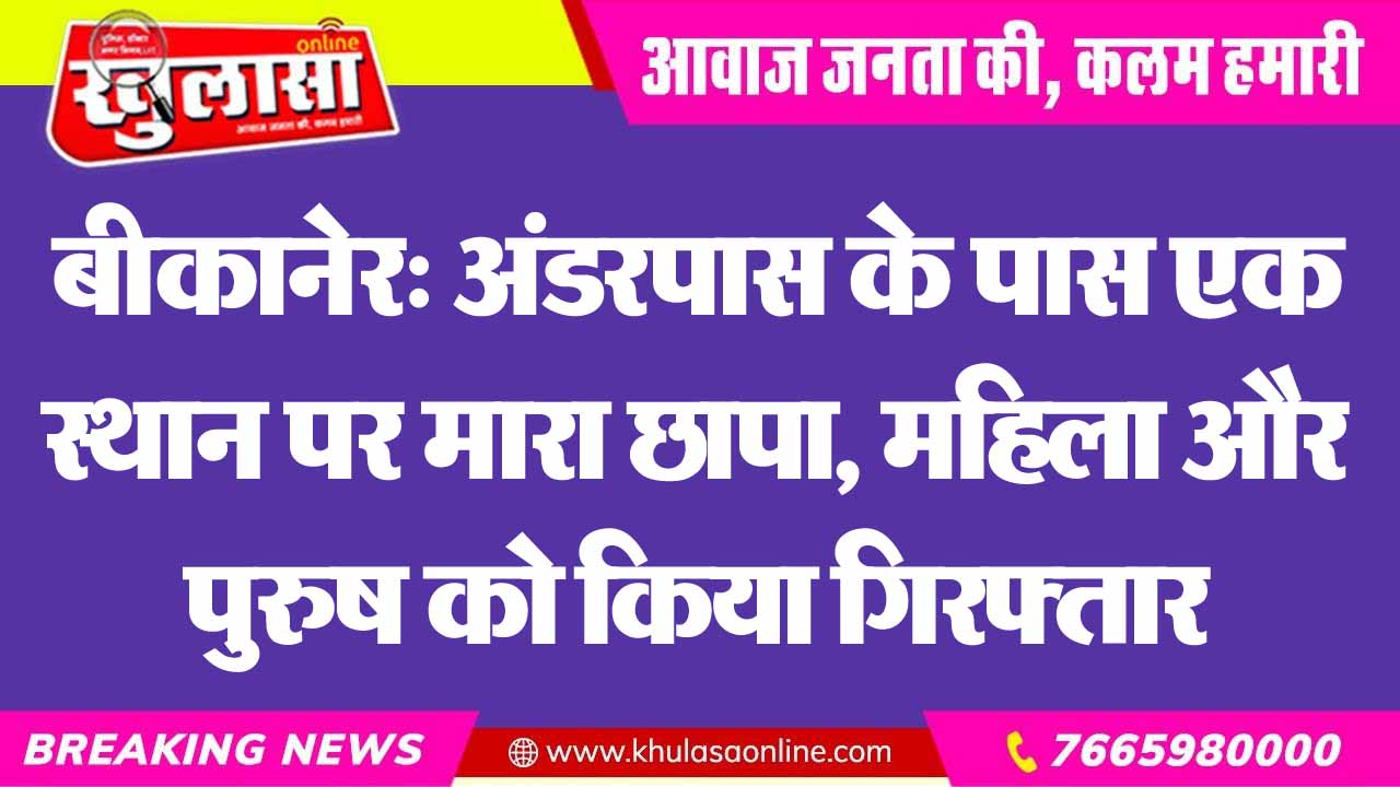 बीकानेर: अंडरपास के पास एक स्थान पर मारा छापा, महिला और पुरुष को किया गिरफ्तार