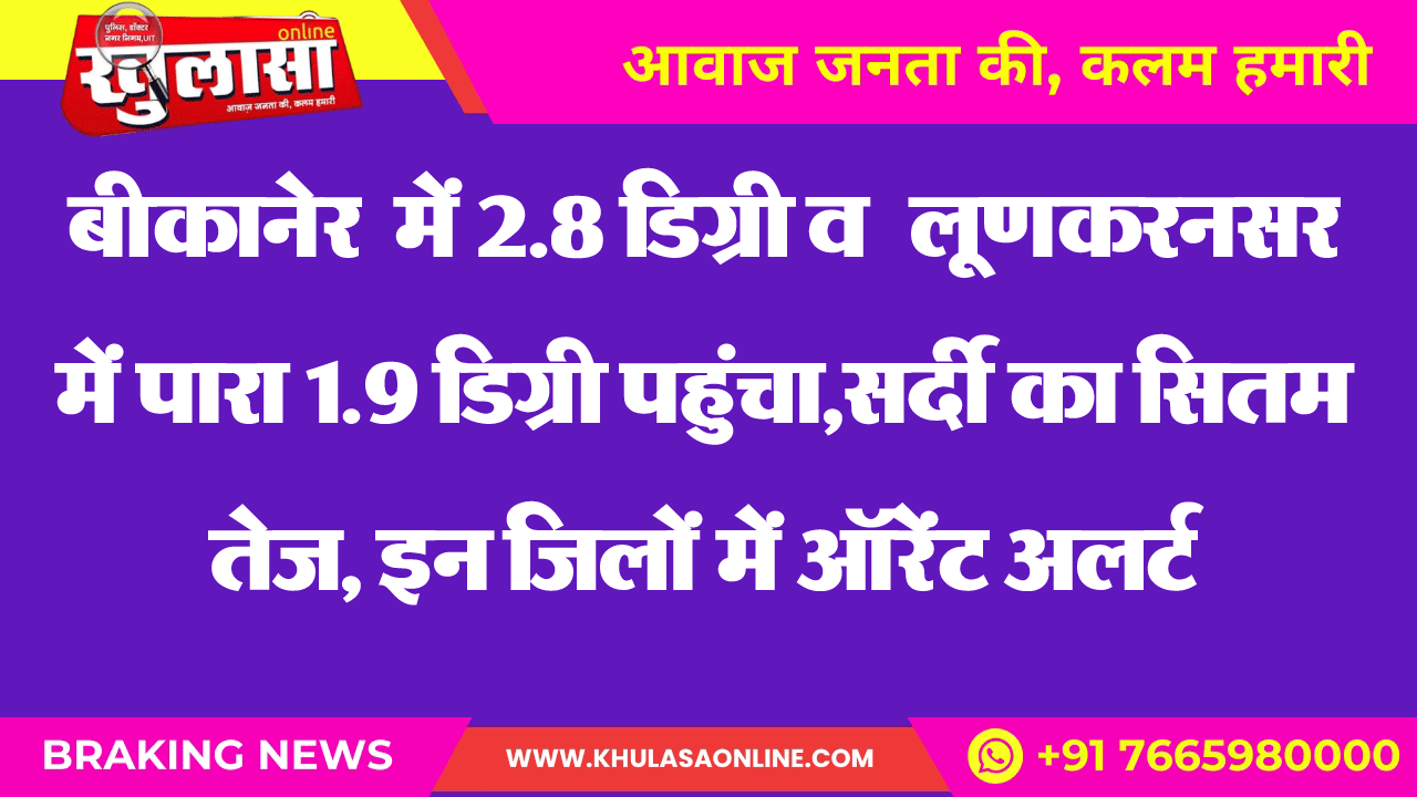 बीकानेर में 2.8 डिग्री व लूणकरनसर में पारा 1.9 डिग्री पहुंचा,सर्दी का सितम तेज, इन जिलों में ऑरेंट अलर्ट
