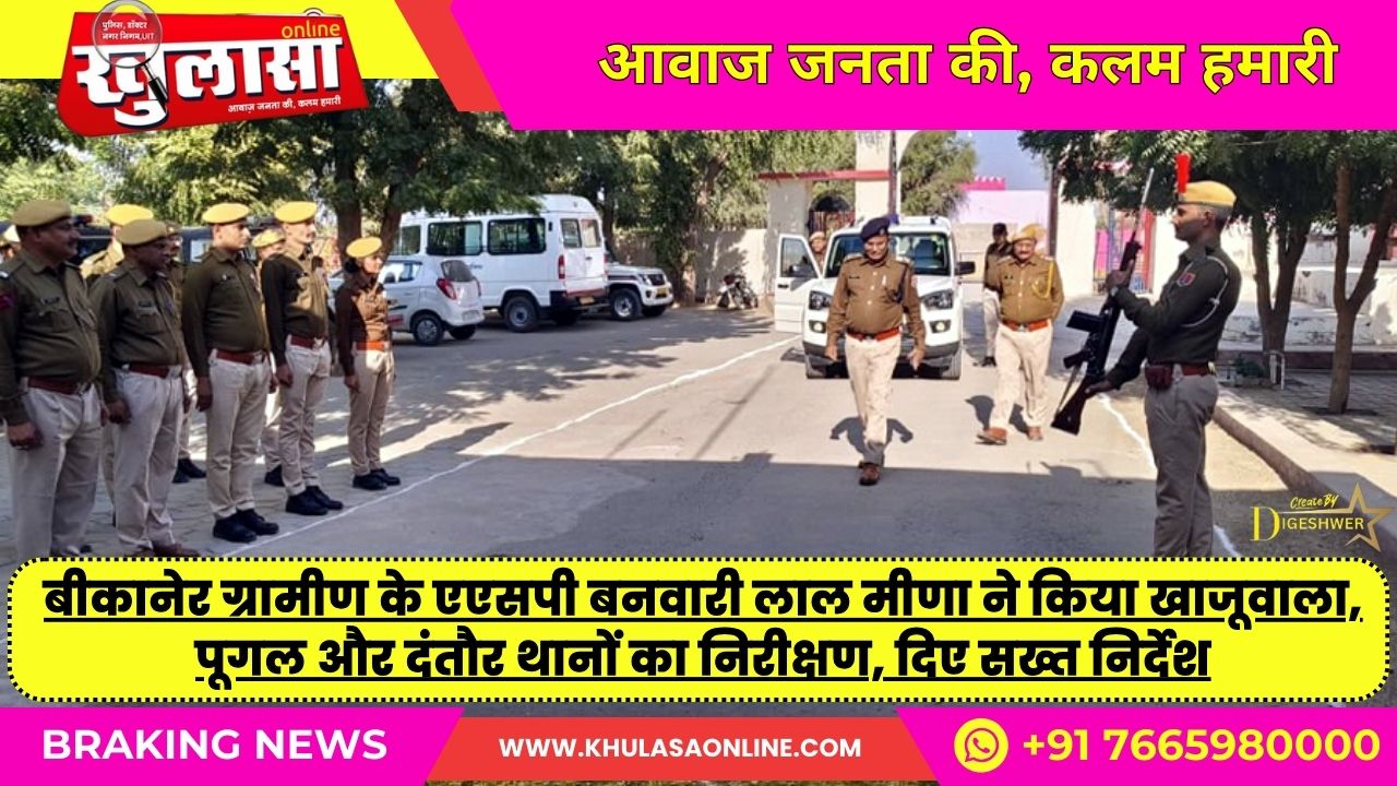 बीकानेर ग्रामीण के एएसपी बनवारी लाल मीणा ने किया खाजूवाला, पूगल और दंतौर थानों का निरीक्षण, दिए सख्त निर्देश