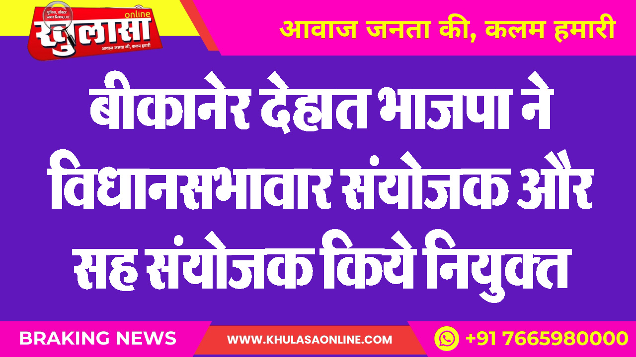 बीकानेर देहात भाजपा ने विधानसभावार संयोजक और सह संयोजक किये नियुक्त