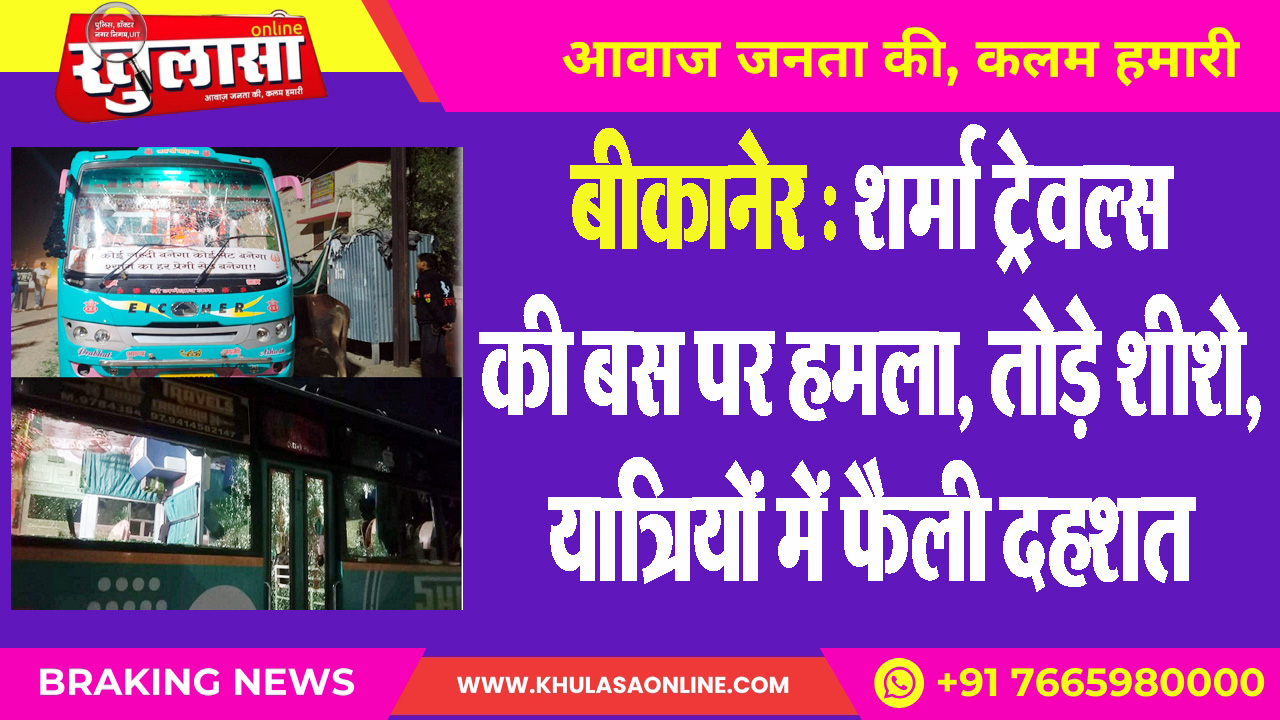 बीकानेर : शर्मा ट्रेवल्स की बस पर हमला, तोड़े शीशे, यात्रियों में फैली दहशत