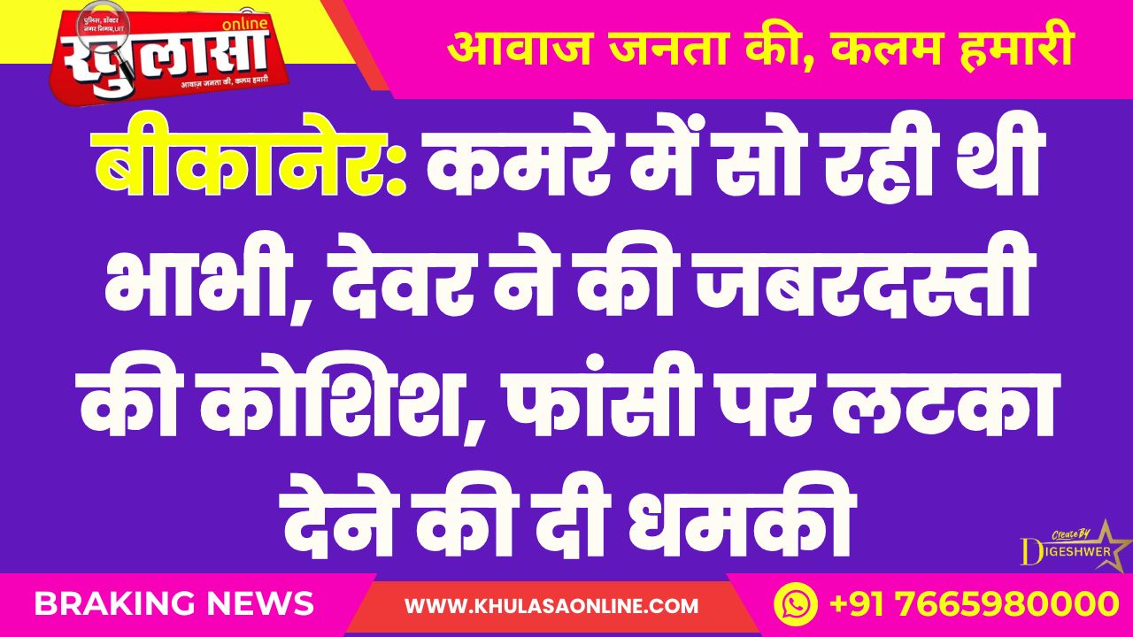 बीकानेर: कमरे में सो रही थी भाभी, देवर ने की जबरदस्ती की कोशिश, फांसी पर लटका देने की दी धमकी