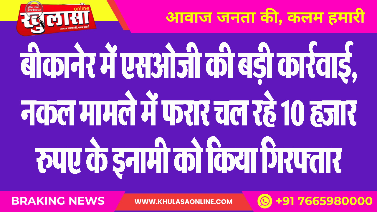 बीकानेर में एसओजी की बड़ी कार्रवाई, नकल मामले में फरार चल रहे 10 हजार रुपए के इनामी को किया गिरफ्तार