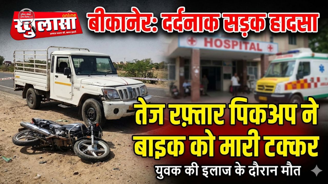 बीकानेर: तेज रफ़्तार पिकअप ने बाइक को मारी टक्कर, युवक की इलाज के दौरान मौत
