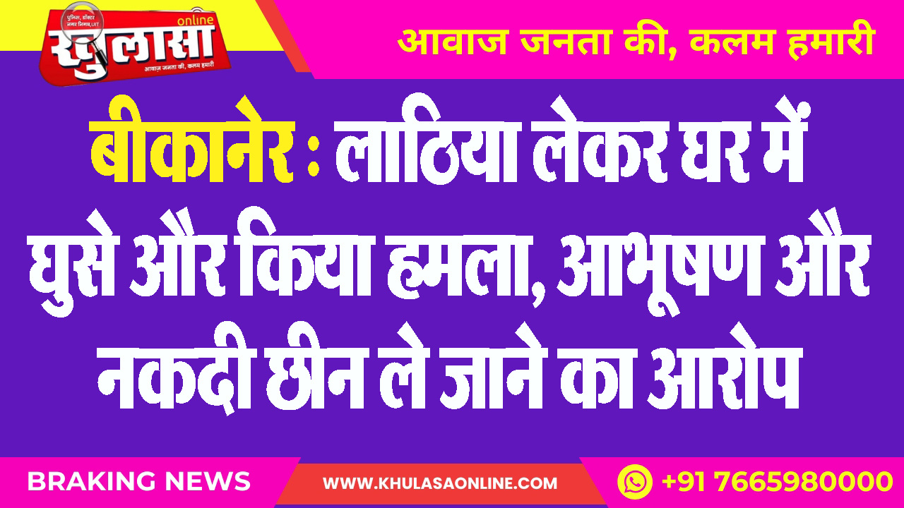 बीकानेर : लाठिया लेकर घर मेंं घुसे और किया हमला, आभूषण और नकदी छीन ले जाने का आरोप