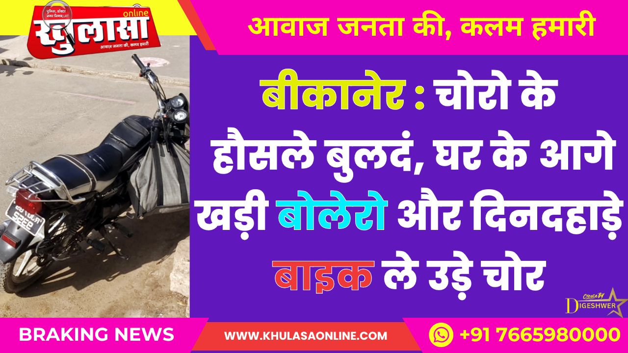 बीकानेर : चोरो के हौसले बुलदं, घर के आगे खड़ी बोलेरो और दिनदहाड़े बाइक ले उड़े चोर