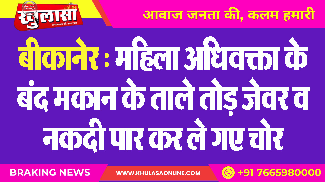 बीकानेर : महिला अधिवक्ता के बंद मकान के ताले तोड़ जेवर व नकदी पार कर ले गए चोर