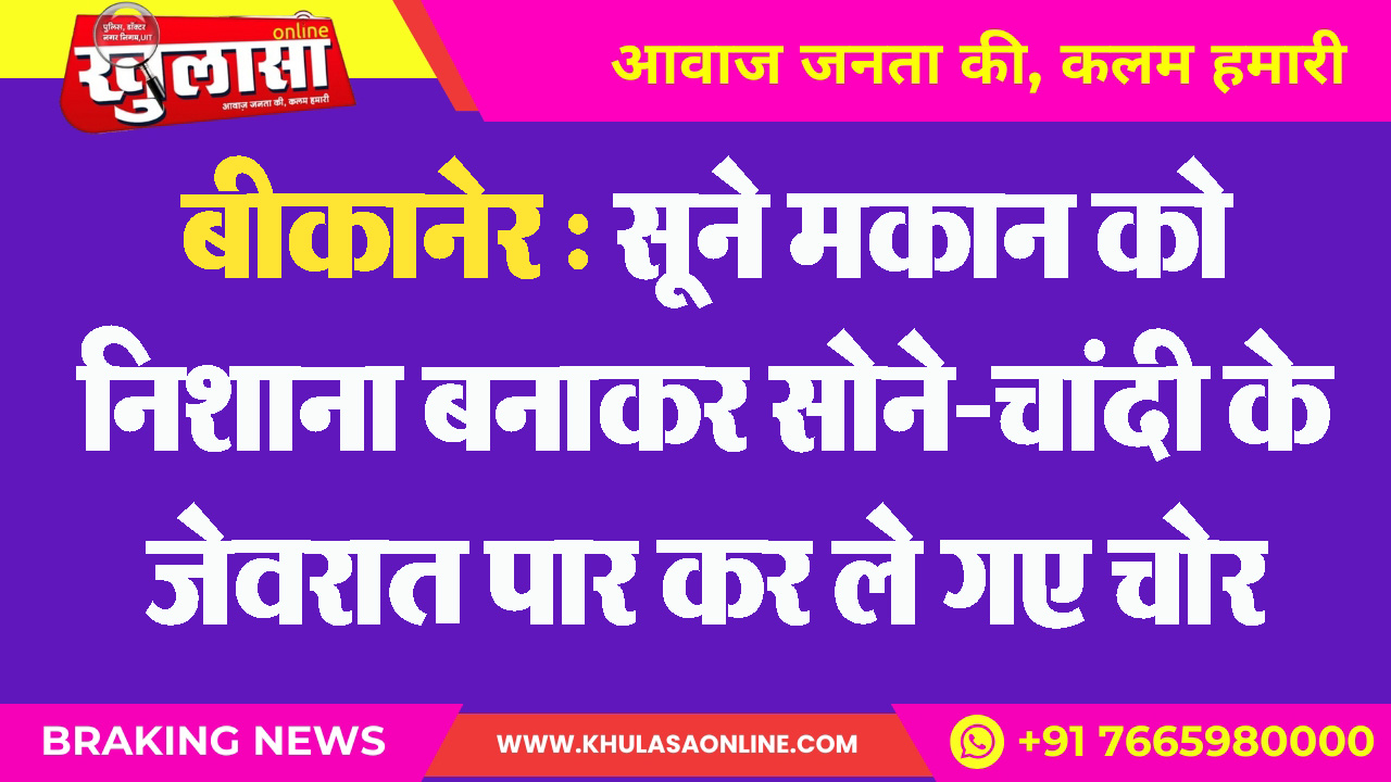 बीकानेर : सूने मकान को निशाना बनाकर सोने-चांदी के जेवरात पार कर ले गए चोर