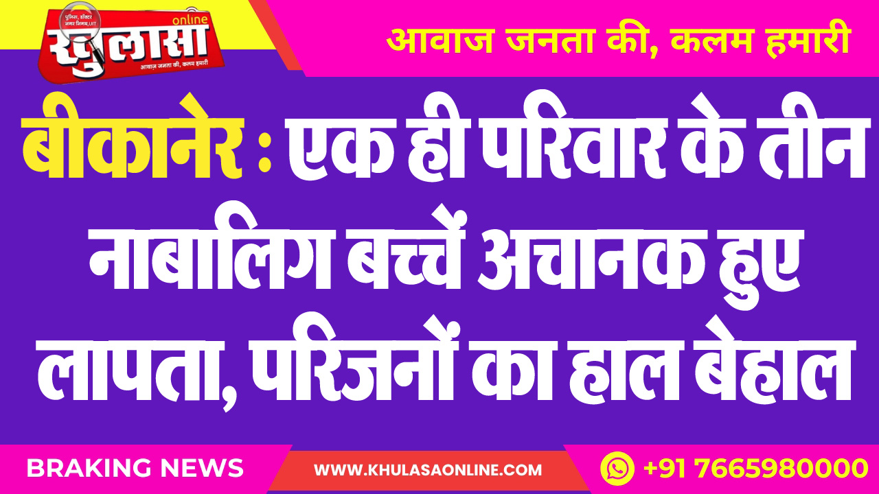 बीकानेर : एक ही परिवार के तीन नाबालिग बच्चें अचानक हुए लापता, परिजनों का हाल बेहाल