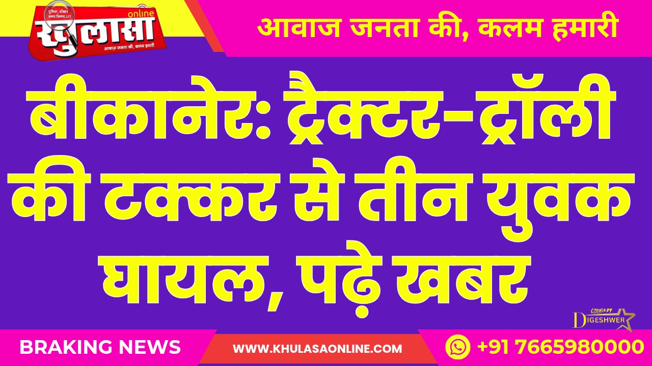 बीकानेर: ट्रैक्टर-ट्रॉली की टक्कर से तीन युवक घायल, पढ़े खबर