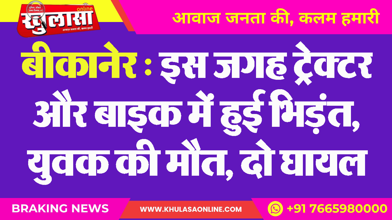 बीकानेर : इस जगह ट्रेक्टर और बाइक में हुई भिड़ंत, युवक की मौत, दो घायल